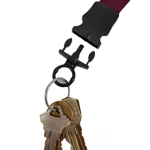 1/2" Cotton Lanyard with plastic snap buckle release and O-ring. O-ring can hold keys and badge clips Burgundy with Gold Jesus Is Lord! Print